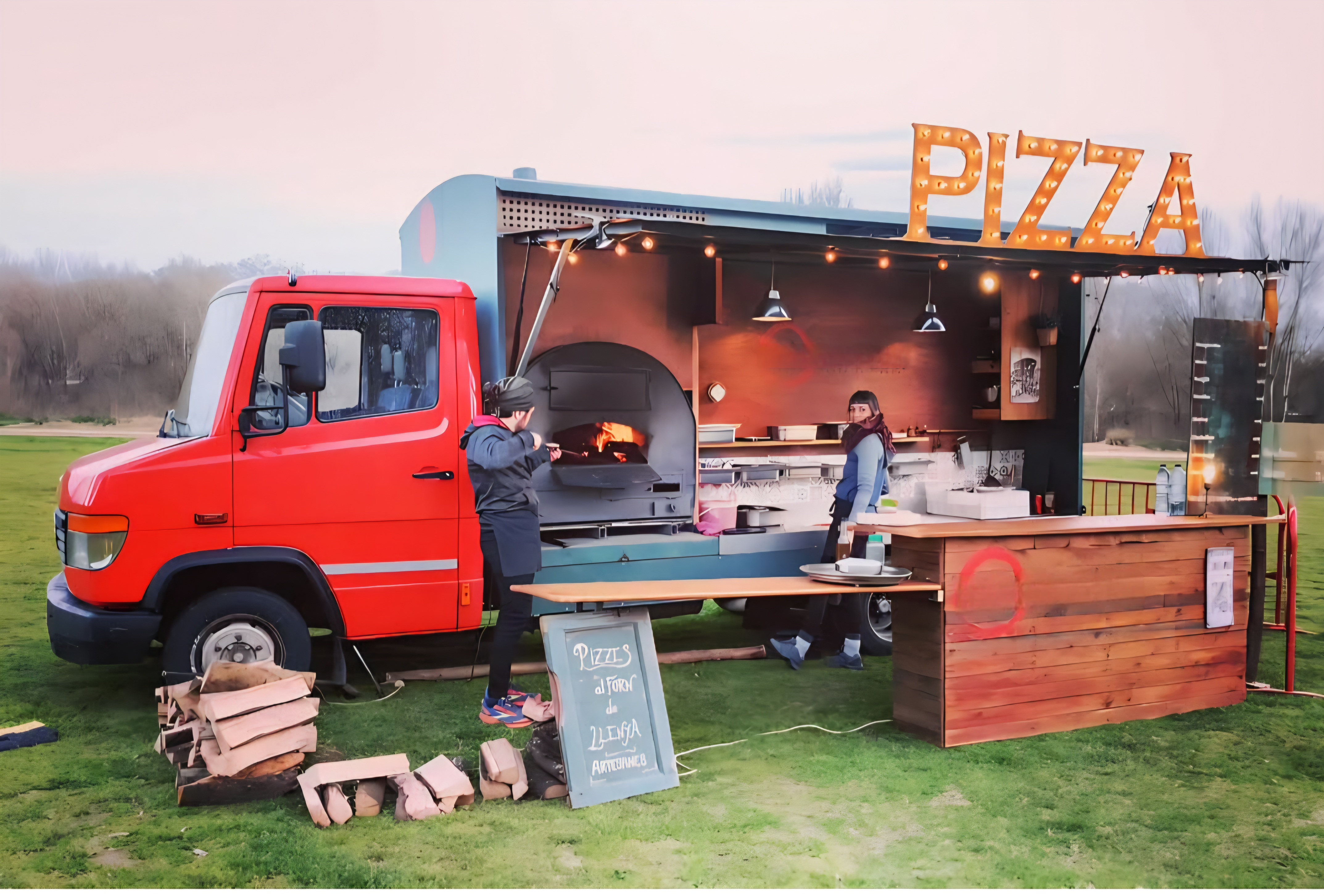 El food truck es un antiguo camión mercedes restaurado y convertido en una auténtica pizzería con obrador.