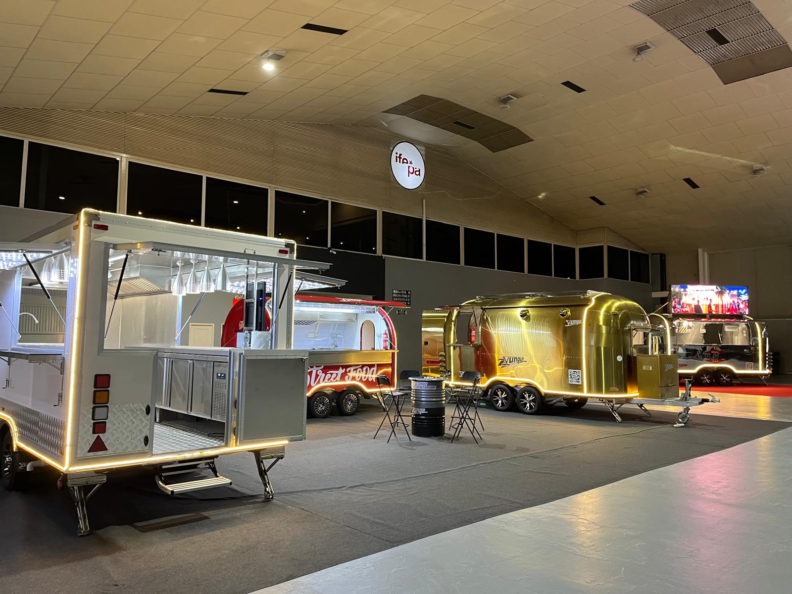 - Dimensiones interiores; 500x210x260- Ruedas: 185-14" mcd - Ejes: 2 x 1500 kg.- M.T.M.A: .........kg. - M.M.A: ......... kg. - Tara: +-1792 kg - Freno de Inercia.- Rueda Jockey D-60.* Remolque bar diseño American trailer , acero inox espejo ,- 2 camaras de frío de 2000x600x800 mm- Cajon delantero en inox para 2 botellas de propano.- Soportes motorizados para letrero superior.- Ventana de servicio trasera.- Fregador de dos pozas con grifo agua del tiempo y caliente- Deposito agua limpia 100 litros y 120 litros aguas residuales- Campana extractora con rejillas inox longitud 2 metros con dos turbinas extractoras de ...... m3/h- Cajon monedero- Mostrador con ventana longitudinal lado izquierdo , armarios en ambos lados, luces led interiores y exteriores.