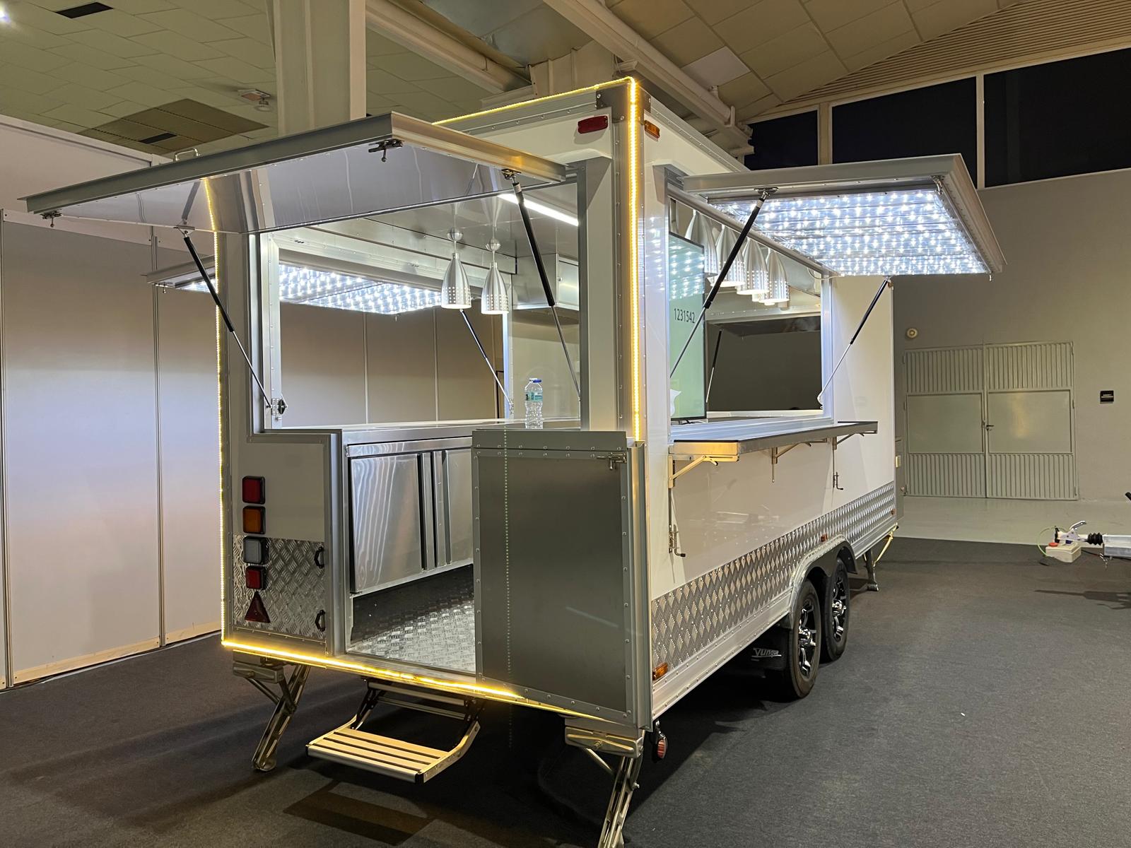 - Mostrador con ventana longitudinal lado izquierdo , armarios en ambos lados, luces led interiores y exteriores.