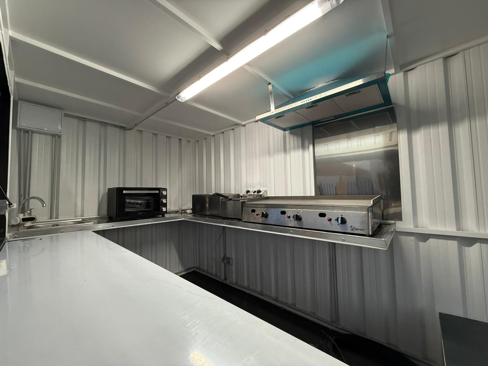 En su interior, encontrarás todo lo necesario para preparar un menú completo: una plancha espaciosa, una freidora de gran capacidad, un horno y un baño maría para mantener tus platos a la temperatura perfecta. Se encuentra en excelentes condiciones y está listo para ser el centro de tu próximo negocio.