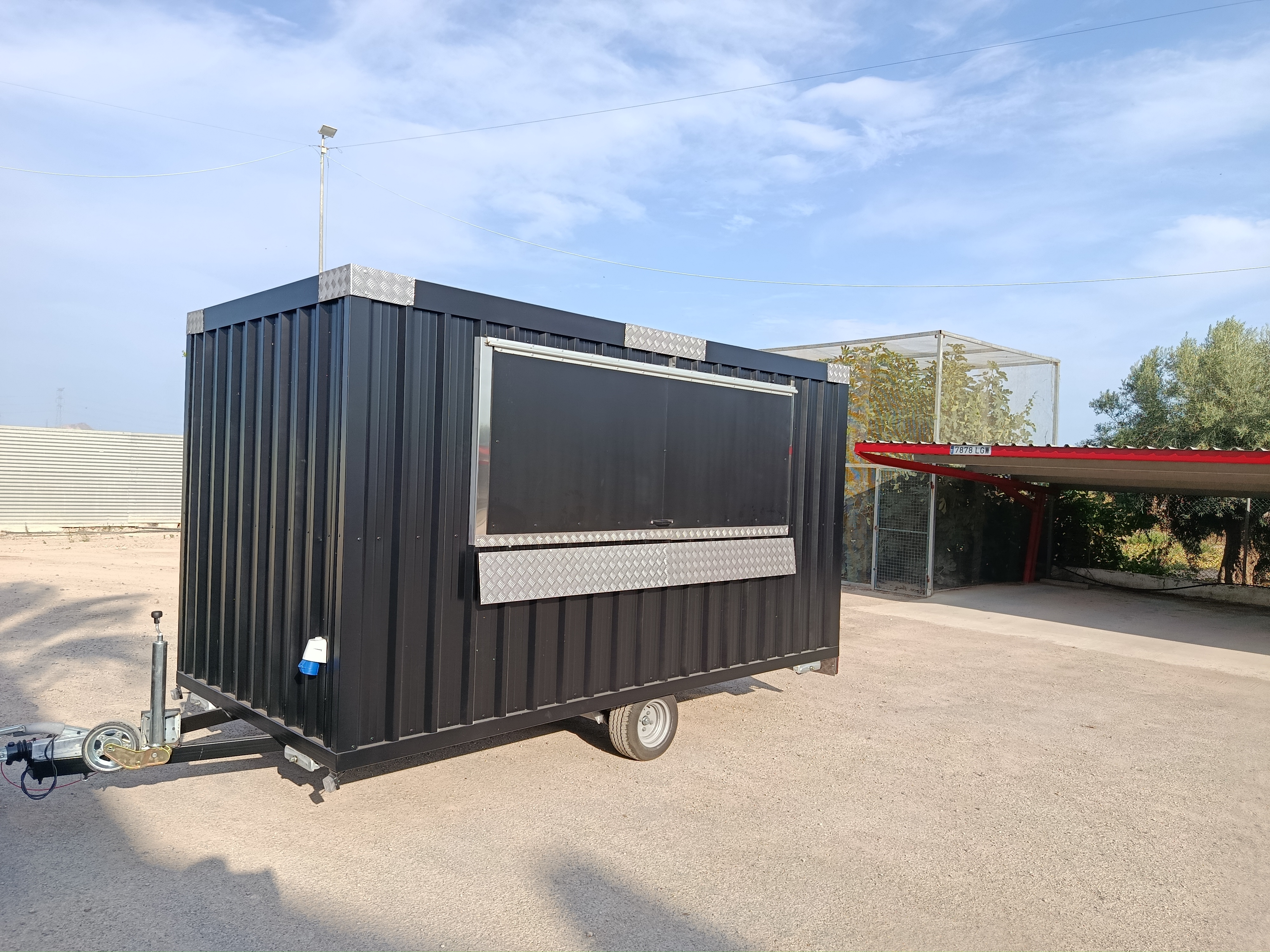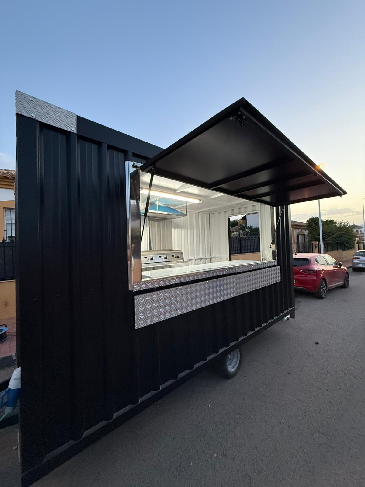 Una verdadera cocina móvil de 4 metros de ancho por 2 de largo. Ha sido diseñado para ser completamente funcional y versátil, ideal para cualquier tipo de evento o lugar.
