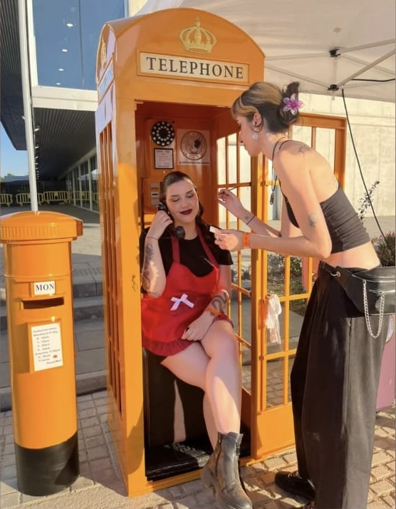 Photocall Vintage, cabina de teléfono antigua y complementos con posibilidad de transformarla en un tocador para realizar los maquillajes más originales.