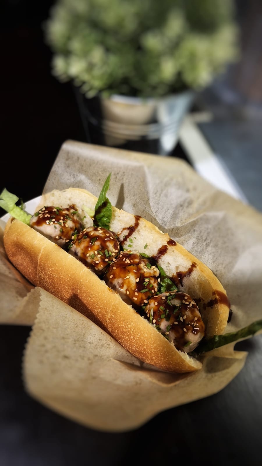 Aquí te ofrecemos una gama variada de bocadillos de paleta de cerdo asada a baja temperatura con una potente salsa barbacoa koreana, de albóndigas caseras con crema de patata trufada y salsa de champiñones, bifana portuguesa; y también tenemos albóndigas veganas en nuestras raciones que pueden ir acompañadas de arroz aromatizado o chips de boniato frito.