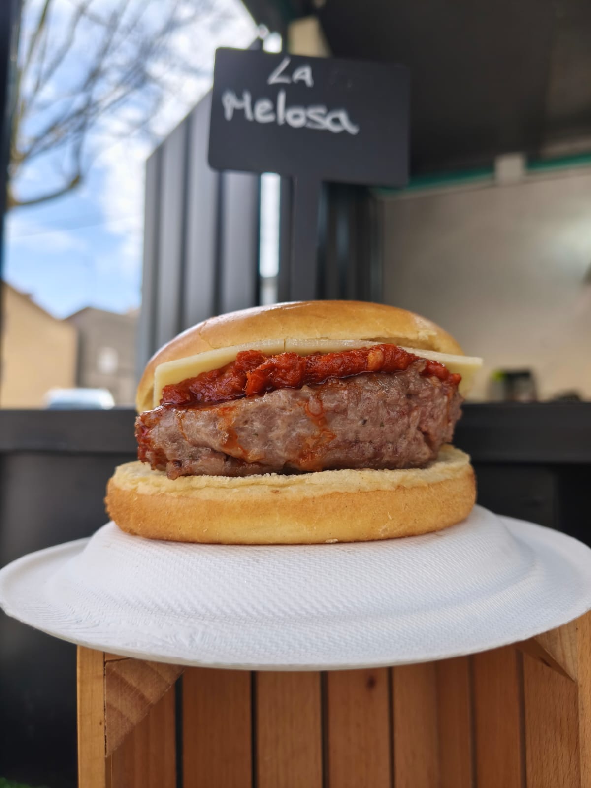LA MELOSA-hamburguesa de ternera con sobrasada casolana un toque de miel de flor y un queso fundido