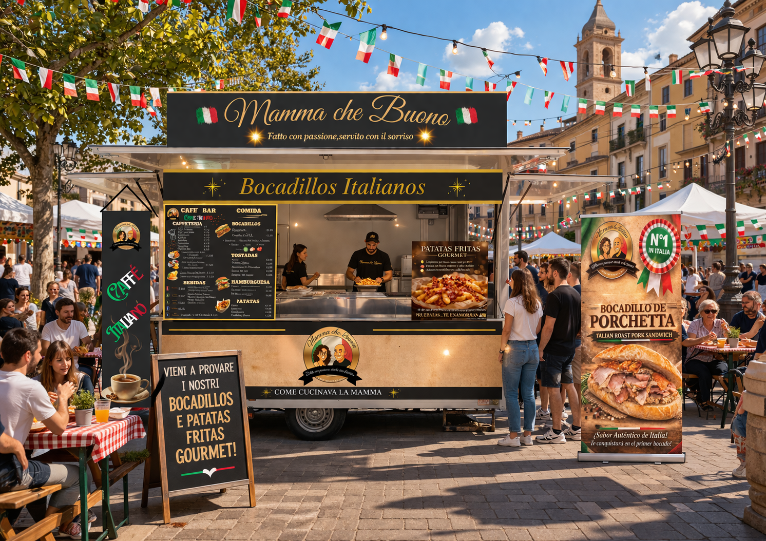 En Mamma che Buono llevamos a la calle el auténtico sabor de Italia. Nuestro food truck ofrece una experiencia gastronómica única, combinando tradición y street food de alta calidad.