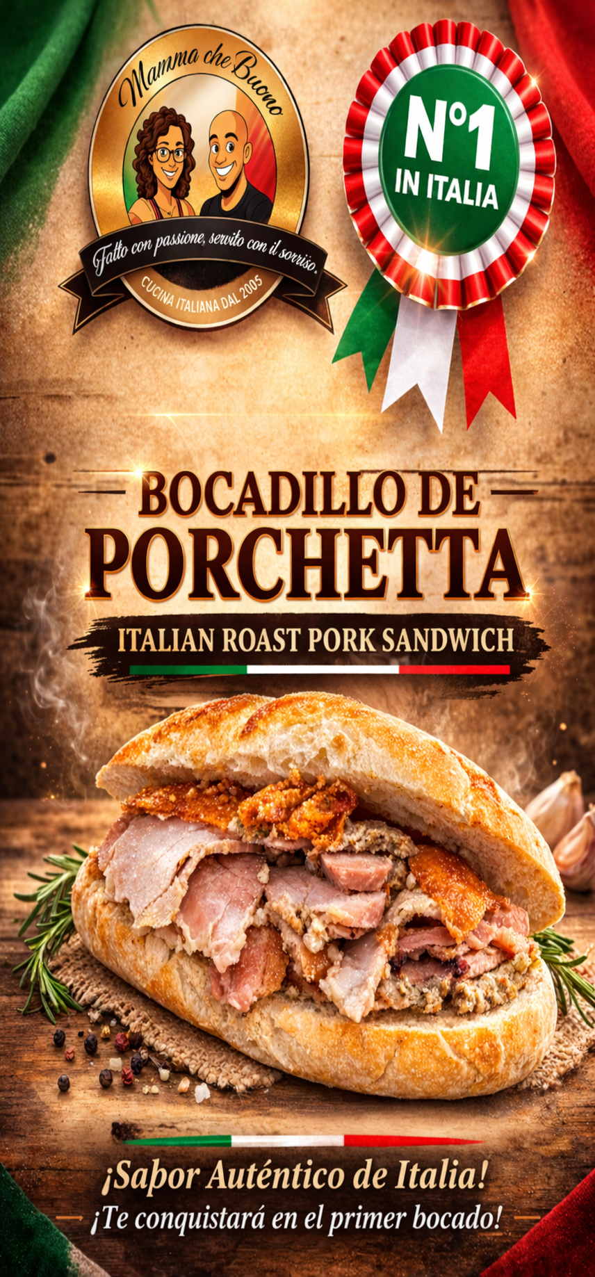 Nuestro punto fuerte es el auténtico bocadillo de Porchetta de Ariccia, una especialidad italiana famosa por su sabor intenso y su textura perfecta: un verdadero icono gastronómico que conquista a todos desde el primer bocado.