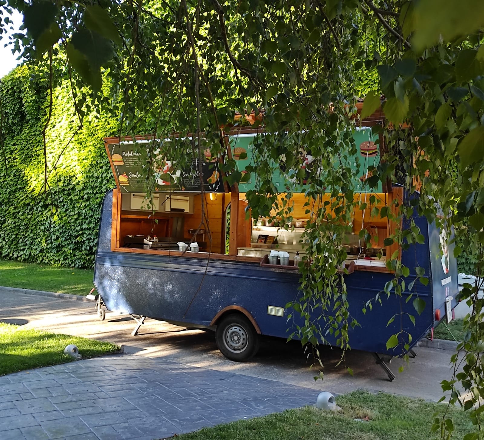 Nuestra Caravana Vintage está equipada con una plancha de 1,20m y una freidora industrial para poder dar el mayor número de pedidos en el menor tiempo posible y así no hacer esperar a los más hambrientos. Y tiene una ventana enorme para que puedas supervisar todo el proceso de elaboración de tu hamburguesa
