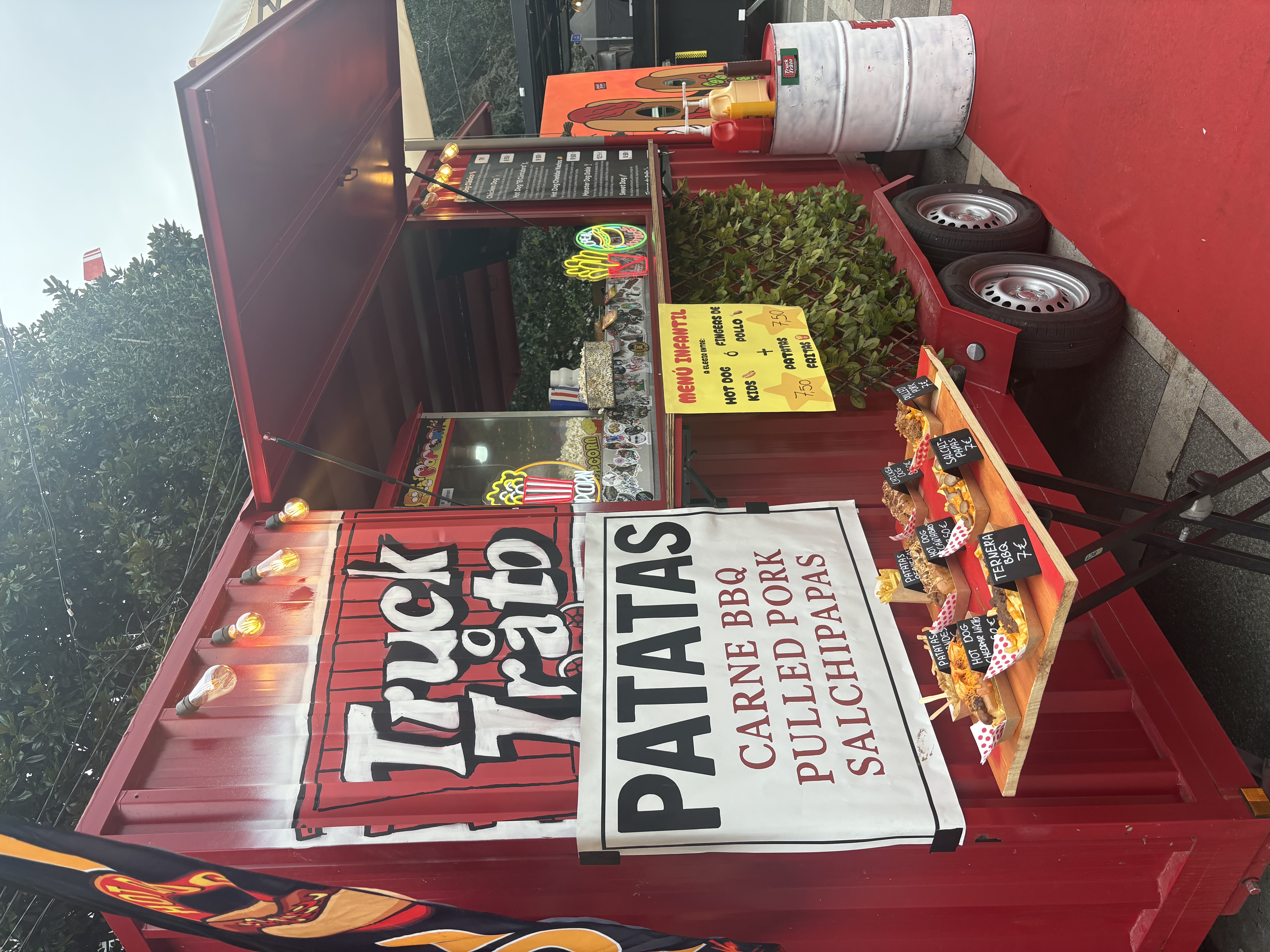 Nuestro cocinero lleva 15 años en el sector, trabajando con un pequeño puesto de perritos y bebidas en eventos, y nos conocimos trabajando para otras marcas en sus foodtrucks en eventos de hamburguesas y festivales, y ahora nos hemos unido y hemos lanzado TRUCK O TRATO para echar a rodar con nuestro propio foodtruck!
