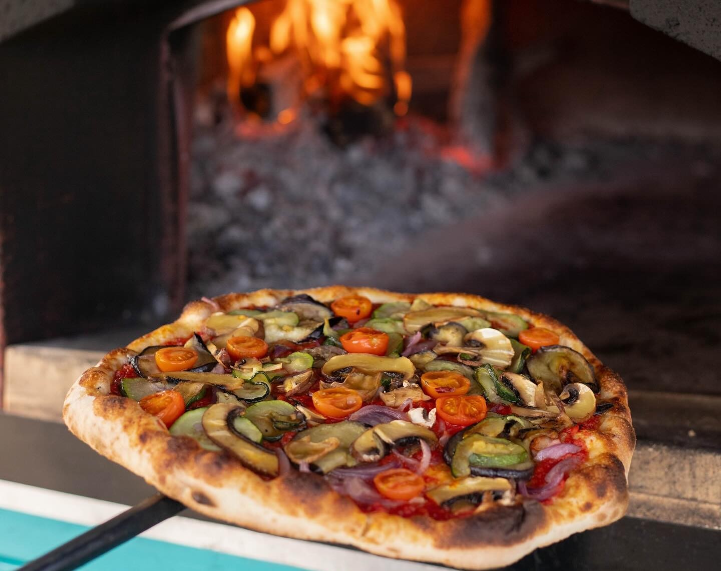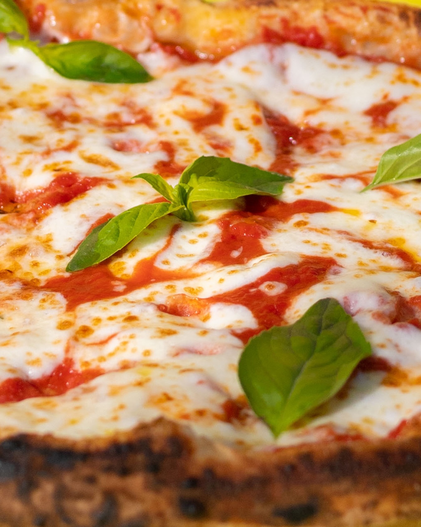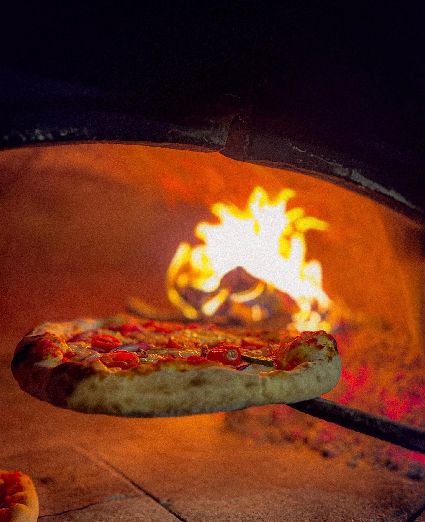 Pizza italiana artesanal cocida al horno de leña. Masa de larga fermentación y con ingredientes naturales.