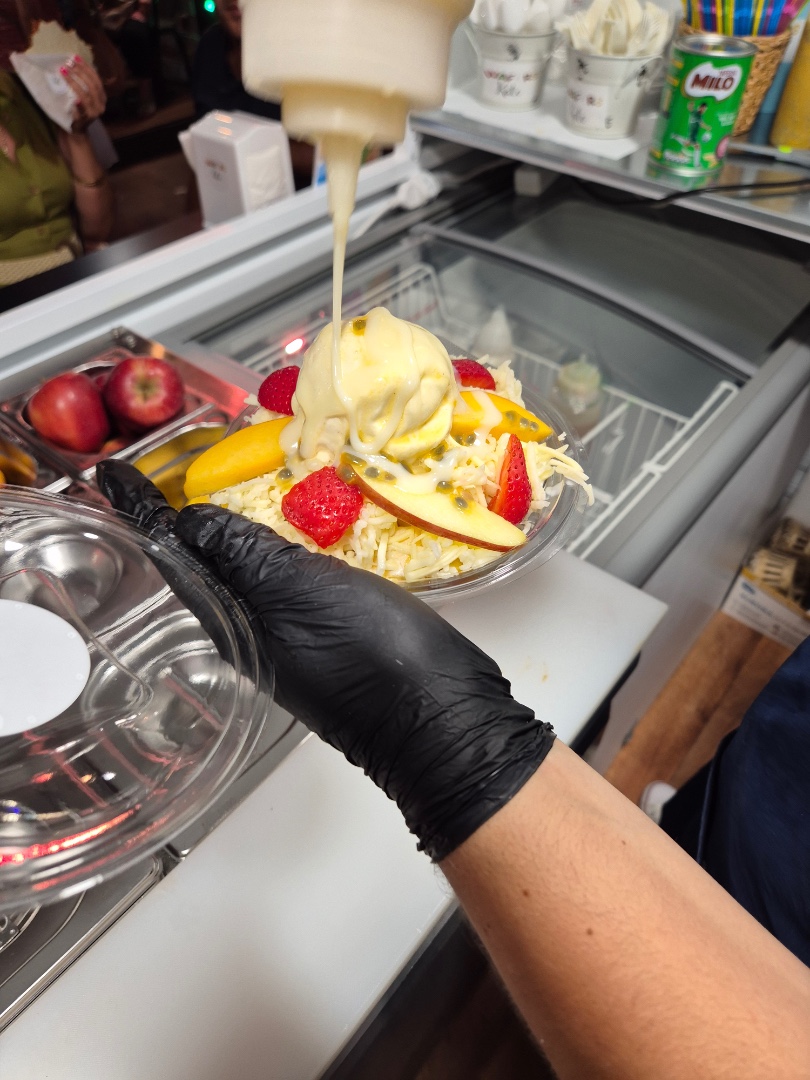 Nuestros productos —como obleas con dulce de leche, cholaos, raspados o ensaladas de fruta— se preparan al momento con ingredientes frescos, combinando sabor, color y tradición.