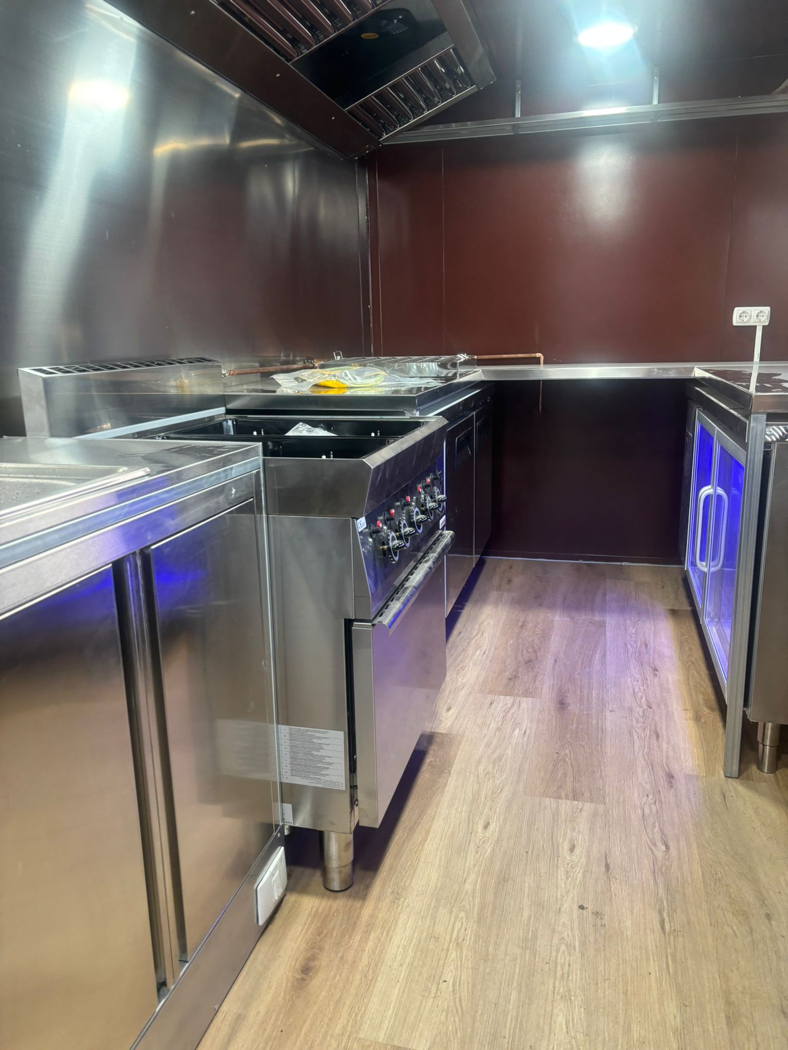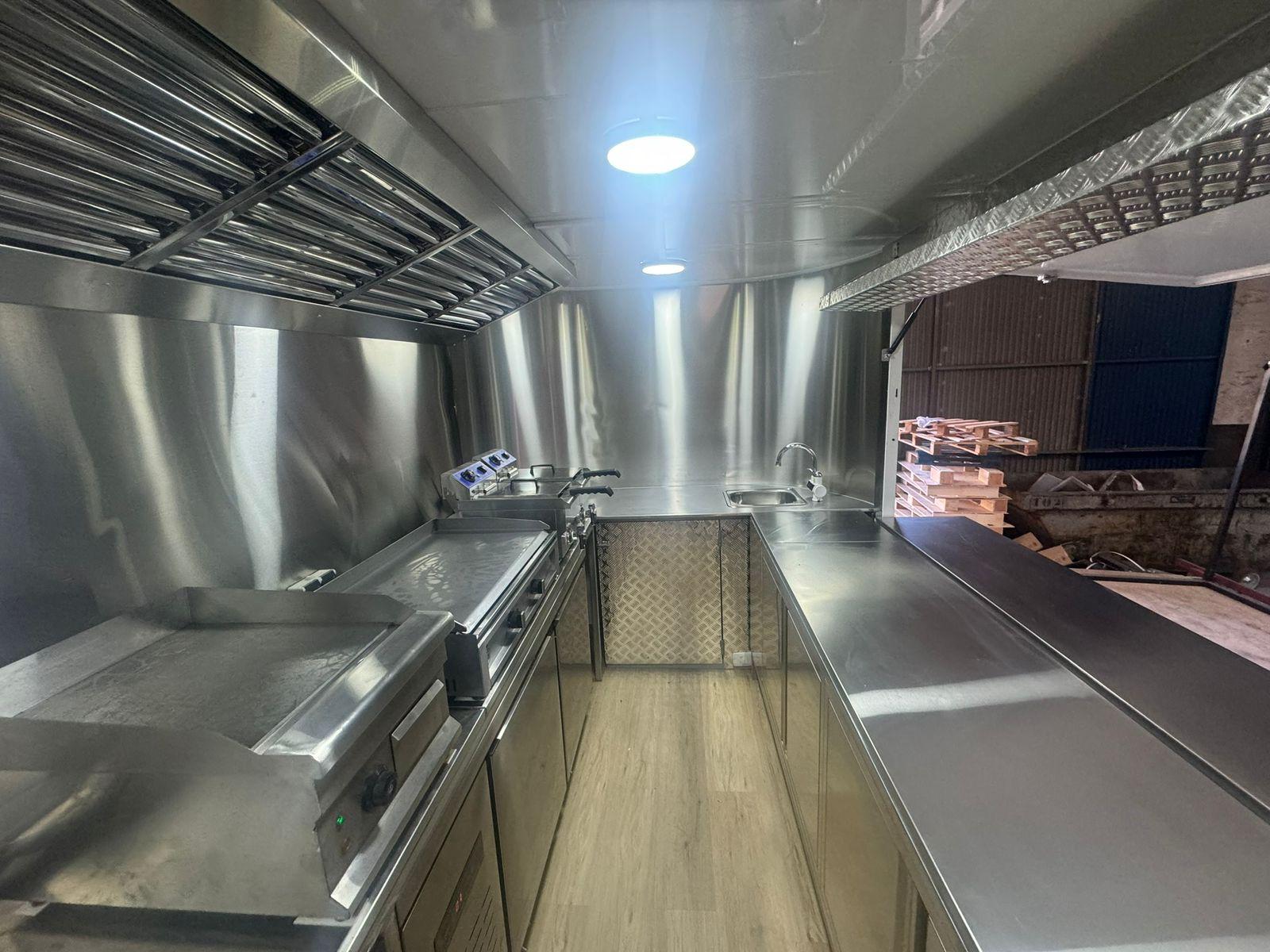 Food truck de 3,7 metros incluye instalación eléctrica, homologación, encimera de venta, campana industrial de 1.5 metros instalación de agua, cajón para el gas (no incluye maquinaria consulta precios).