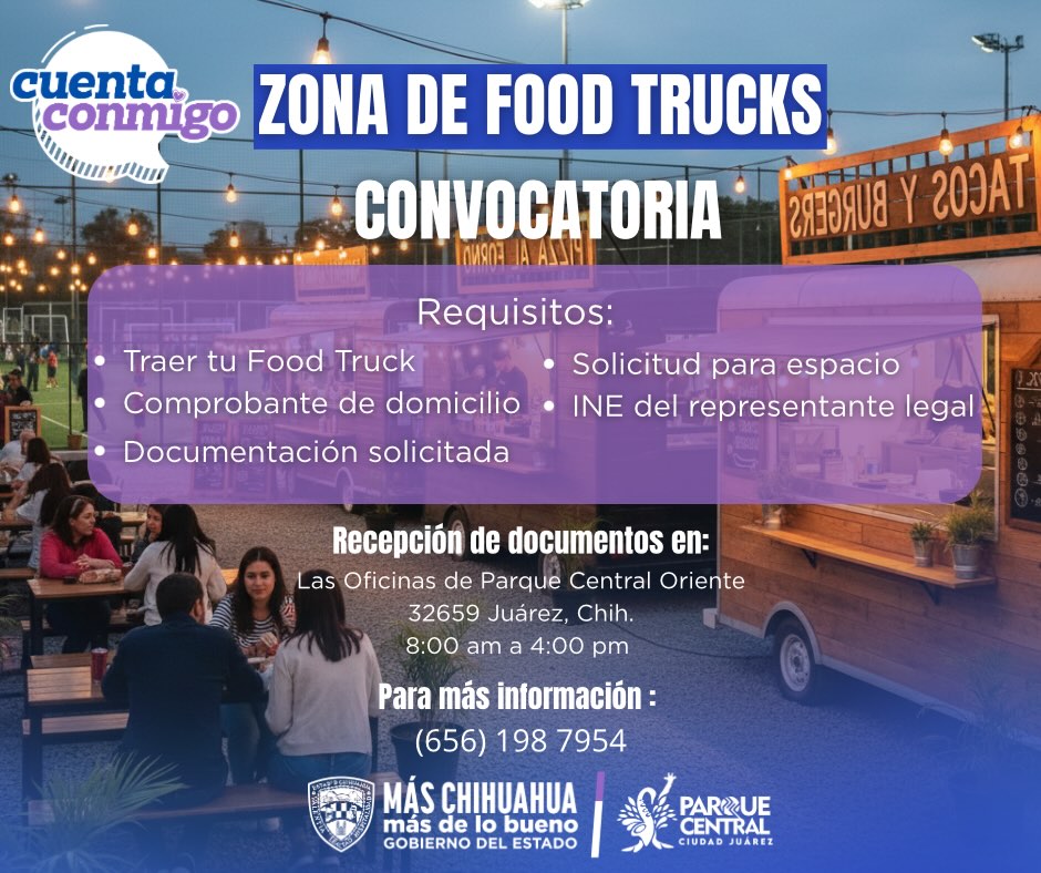 El Parque Central de Ciudad Juárez abrió una convocatoria dirigida a emprendedores gastronómicos interesados en instalar food trucks dentro del recinto. La medida busca ampliar la oferta de alimentos para los visitantes y avanzar en la sostenibilidad financiera del parque.