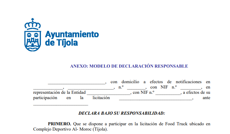 Las personas interesadas deben presentar la documentación necesaria antes del 25 de octubre, en las oficinas del Ayuntamiento, en horario de 9:00 a 14:00 horas. Las bases y dosumentación de la convocatoria para licitación de food truck se encuentran disponibles en la web del Ayuntamiento de Tíjola.