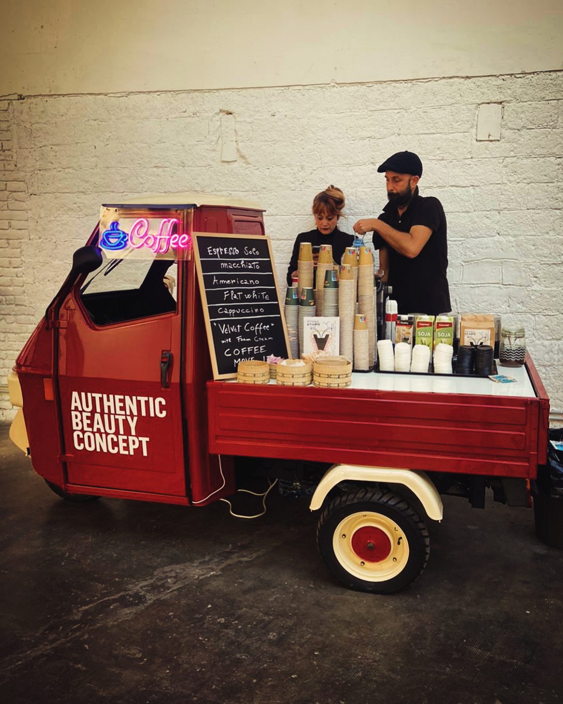 Es una nueva evolución del concepto original de Coffee Move It adaptada al estilo original italiano vintage del Ape Piaggio por eso se llama: Ape Move It