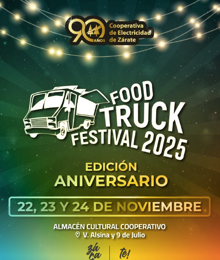 La ciudad de Zárate llevará a cabo una nueva edición del Food Truck Festival los días 22, 23 y 24 de noviembre en el Almacén Cultural Cooperativo, en la intersección de 9 de Julio y V. Alsina. El encuentro se integra este año a la conmemoración del 90º aniversario de la Cooperativa de Electricidad de Zárate y contará con acceso libre y gratuito.
