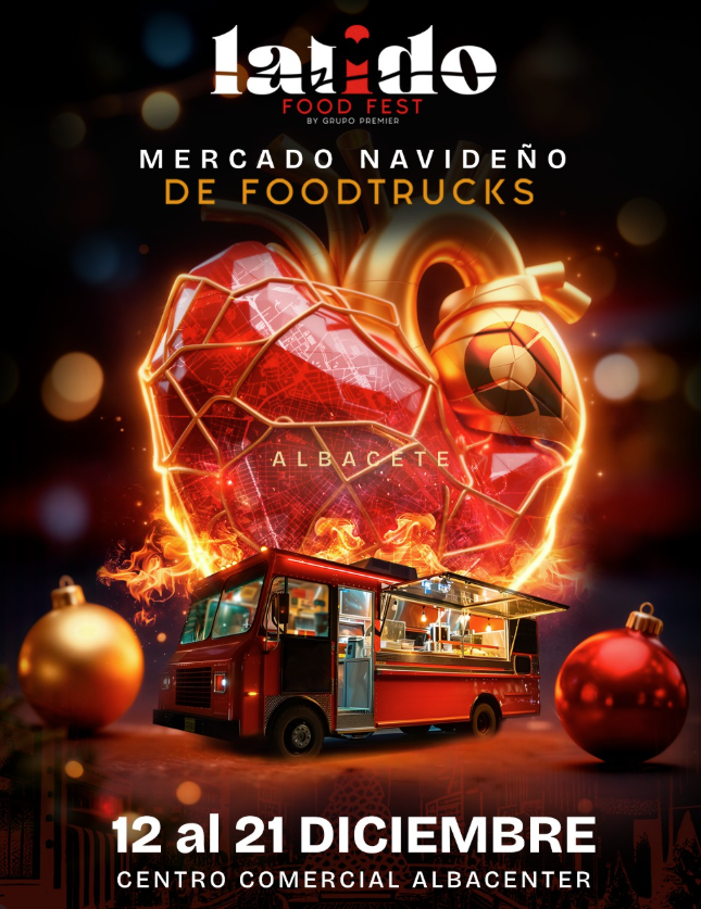 Albacete estrenará del 12 al 21 de diciembre el Latido Food Fest – Mercadillo Navideño de Food Trucks, un nuevo evento gastronómico que transformará el parking del Centro Comercial Albacenter en un espacio dedicado a la comida sobre ruedas y a la ambientación navideña.