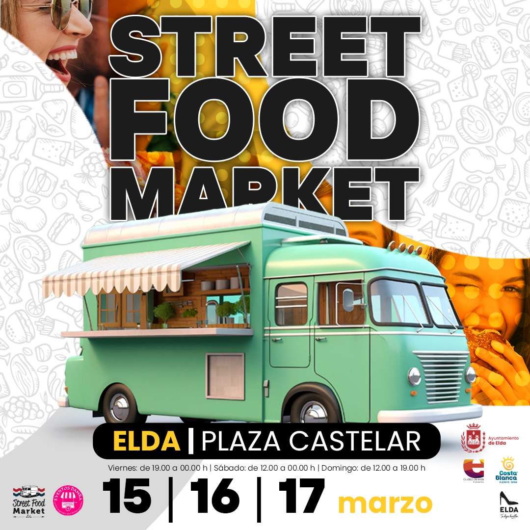 Entre el 15 y el 17 de marzo, en Elda se celebrará la octava edición del Street Food Market en la Plaza Castelar, pudiendo así disfrutar de food trucks en Alicante. La concejala de Turismo anunció que el objetivo es dinamizar la ciudad durante ese fin de semana, atrayendo a localidades cercanas..