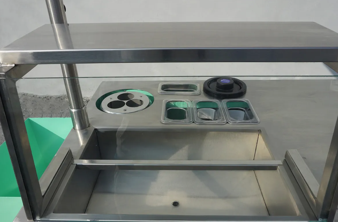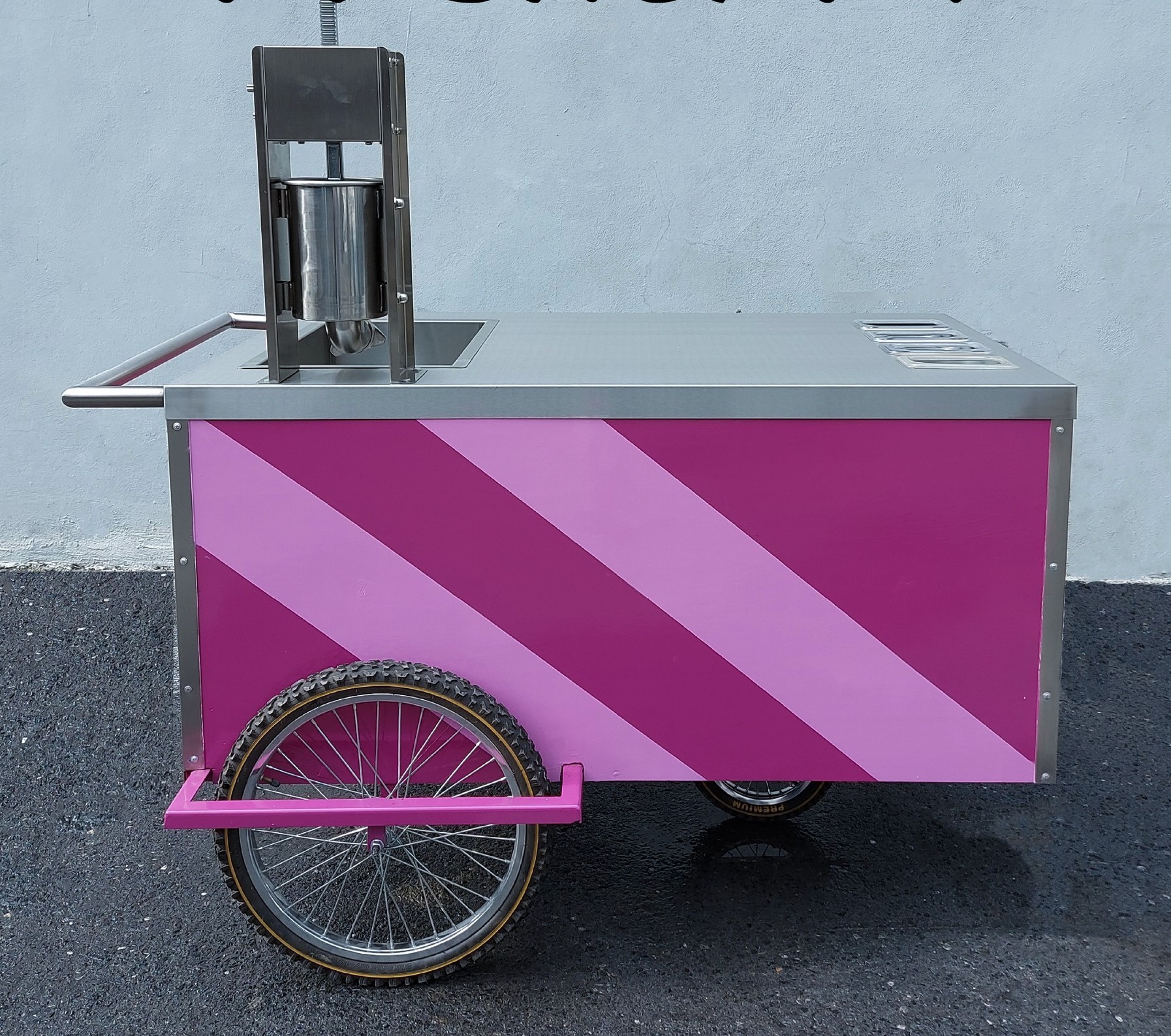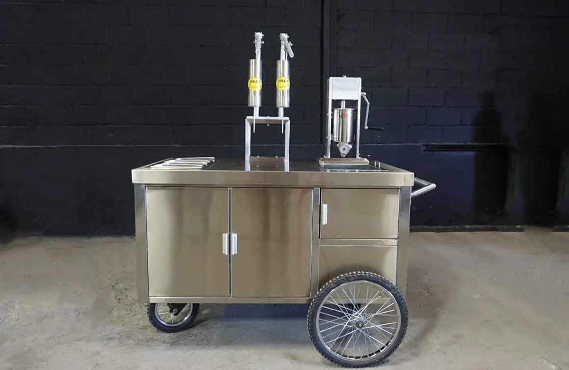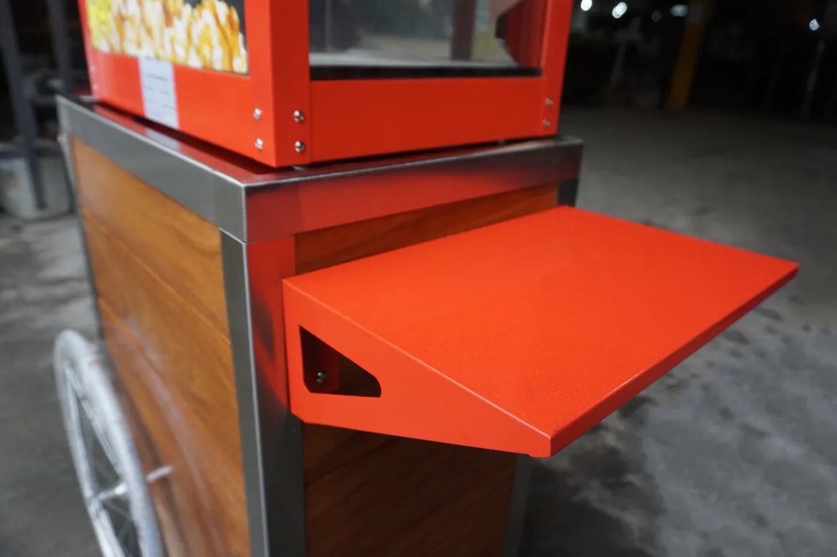 Un push cart con diseño compacto que optimiza el espacio y facilita la movilidad en eventos, ferias o lugares concurridos.
